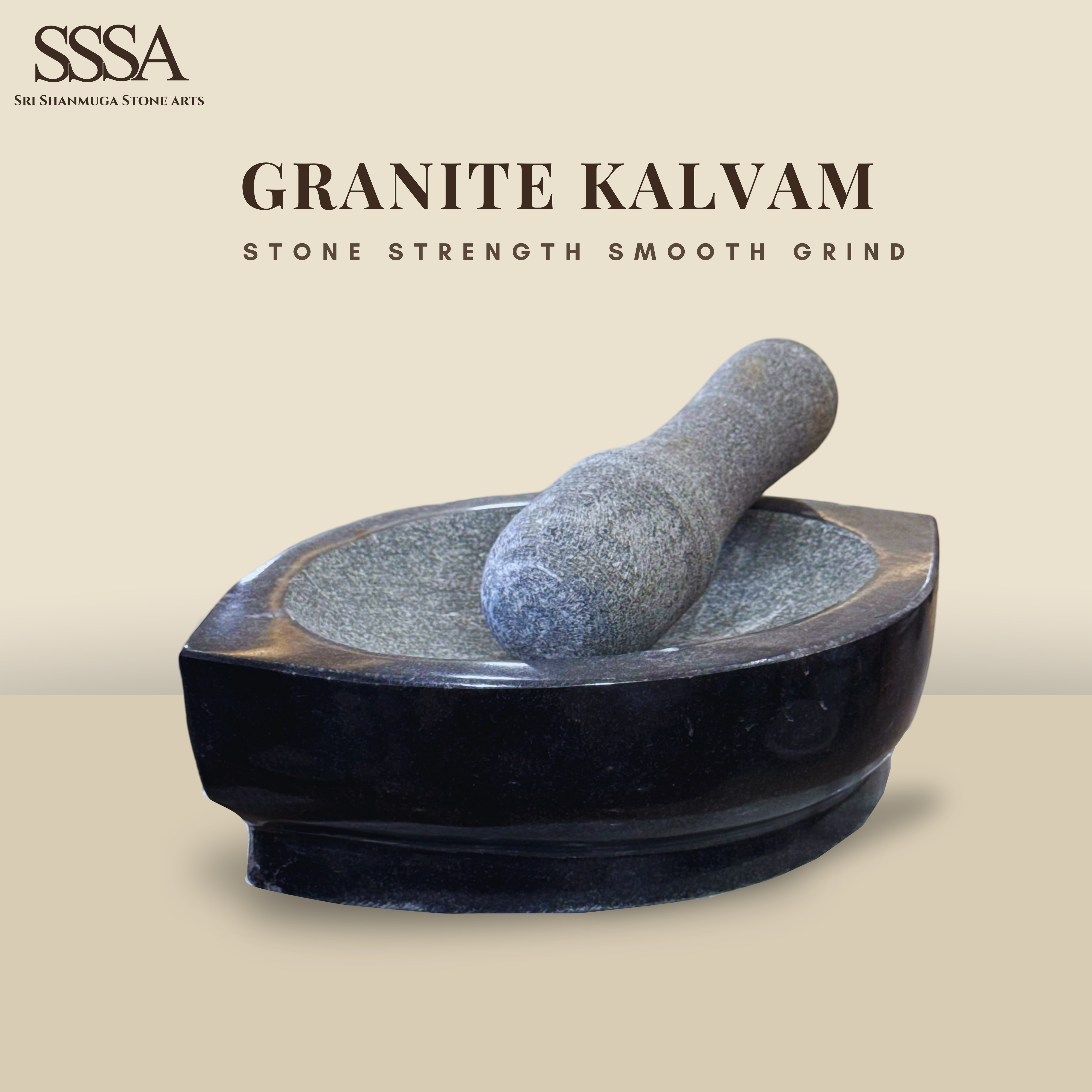 Perfect for ayurvedic medicine preparation, spice grinding, and traditional kitchens, this Granite Kalvam is an essential tool for those who appreciate natural and authentic grinding methods.
